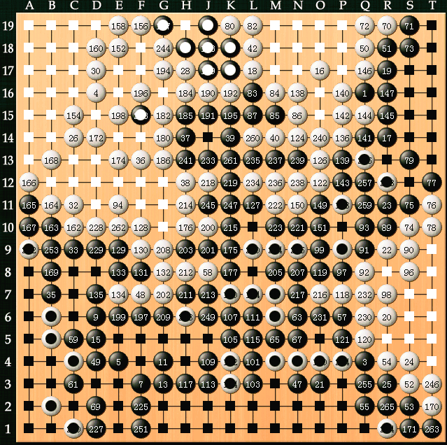 狸猫换太子,九目换十三,白棋亏大,最终黑胜。