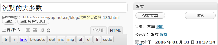这篇文章最早起草于2006年1月31日,后来几经删改,跟原本想写此文时欲表达的意思完全不一样了。从文章编号看来,是一篇很早的文章,本想谈谈中国社会的现状,不过后来想通了:你不可能通过一篇文章让大多数人脱离沉默,受到鼓舞奋发起来,从而更加积极地面对生活。所以最后就完全删除掉了,此记。