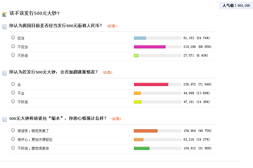 对于发行500元人民币的网上调查结果
