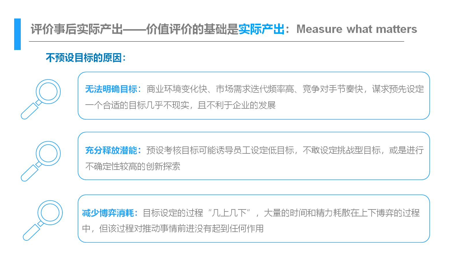 为什么评估实际产出而不是做提前的目标设定?